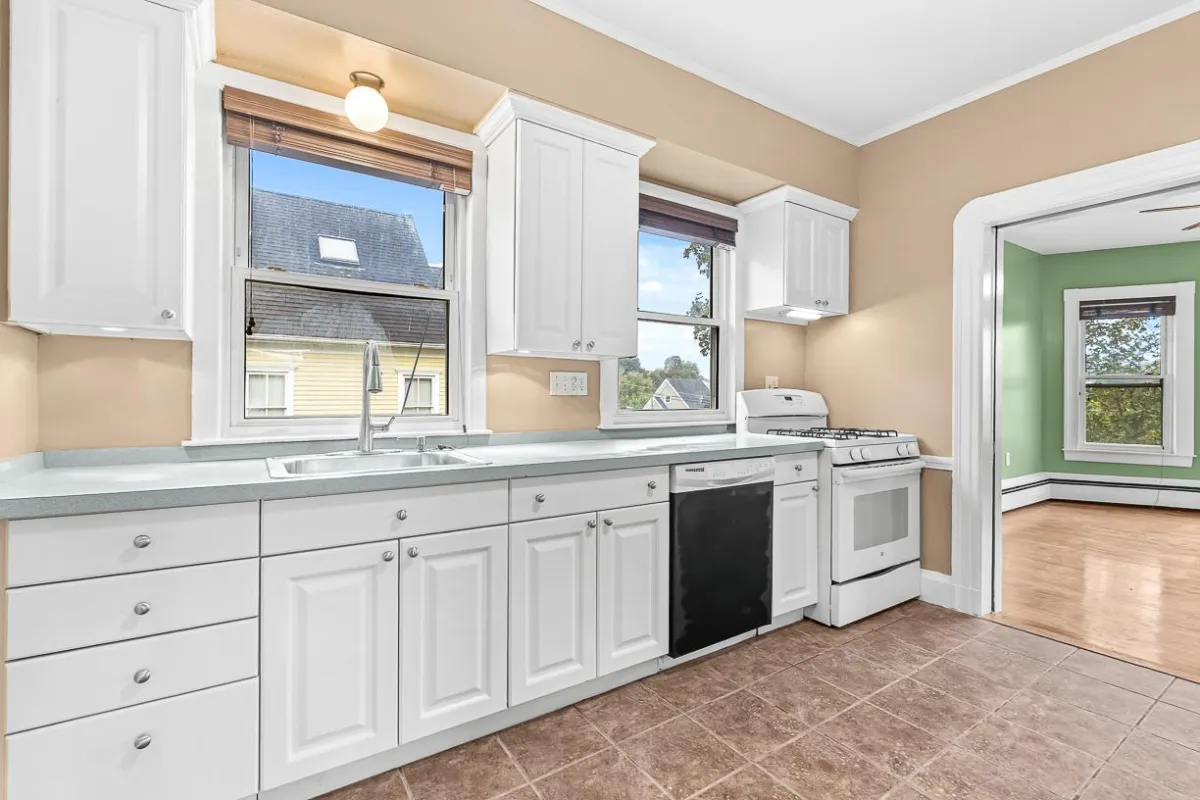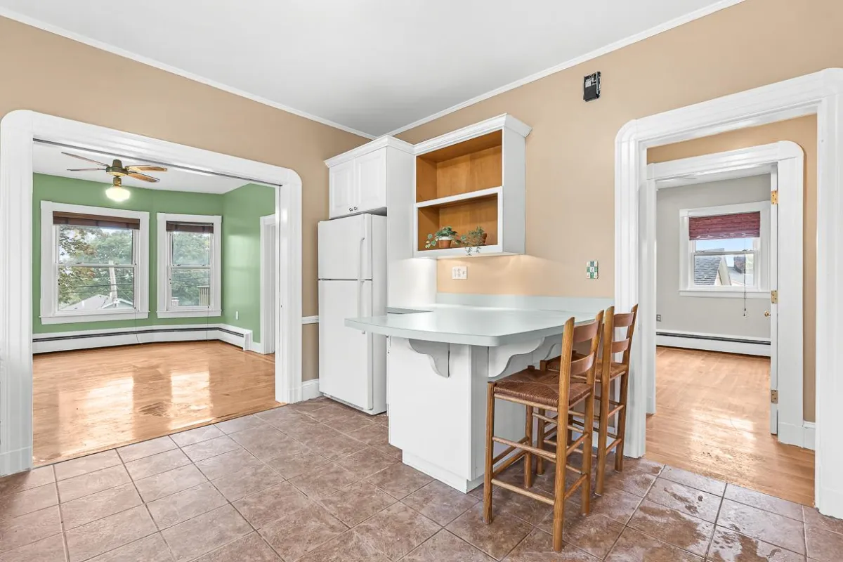 This second-floor Oak Square condo, originally built in 1899 and later converted in 1985 to combine New England character with smart updates, making it an ideal choice for a first-time buyer or a Boston pied-a-terre.